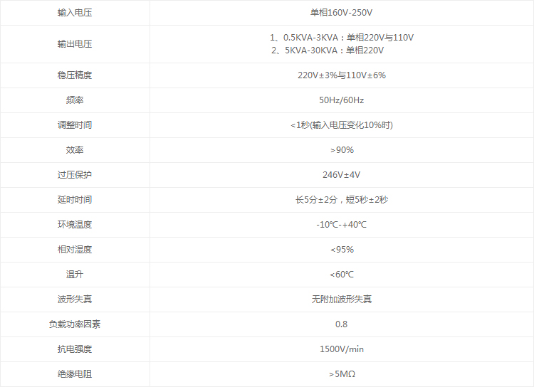 (注:2KVA及2KVA以上產(chǎn)品不僅有延時(shí)、過(guò)、欠壓等保護(hù),且有市電直通功能)