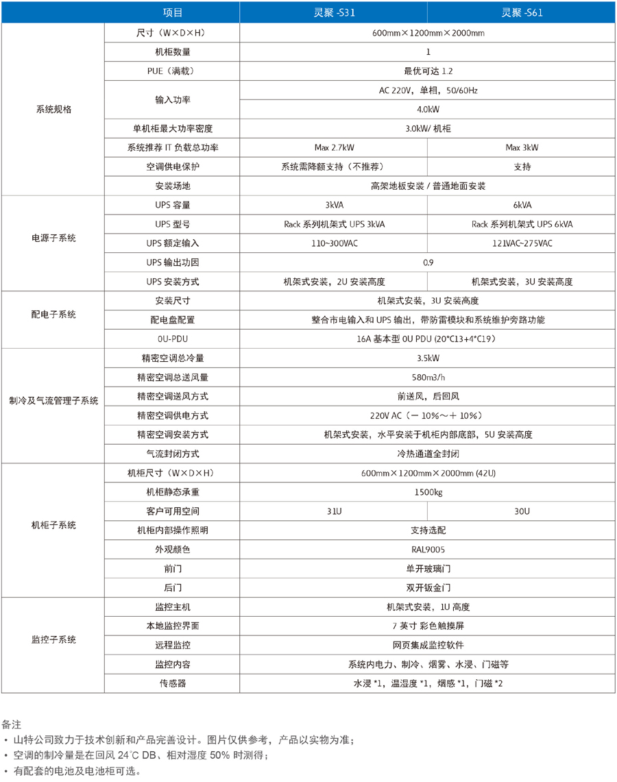 山特靈聚系列將數(shù)據(jù)中心物理基礎(chǔ)設(shè)施產(chǎn)品整合集成為一個系統(tǒng),包含電源、配電、制冷、機架、監(jiān)控、布線等子模塊。該方案產(chǎn)品,包括針對小微型分支機構(gòu)設(shè)計單機柜整體解決方案和中小型機房多機柜整體解決方案,為客戶一站式提供了機房物理基礎(chǔ)設(shè)施。為客戶提供更可靠的系統(tǒng)兼容性,更靈活合理的配置,更快速的交付周期,更整潔的機房環(huán)境,更低的投入和運營成本,及安全可靠節(jié)能的系統(tǒng)保障。