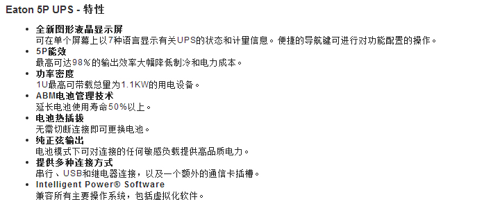 為滿足全球客戶對UPS日益提升的安全、可靠、有效率及穩(wěn)定性的需求, EATON集團(tuán)秉承為客戶提供專業(yè)整體解決方案的理念,結(jié)合當(dāng)前智能化和綠色環(huán)保的發(fā)展趨勢,推出新一代在線互動(dòng)式UPS 5P系列650~1550VA,為IT和企業(yè)辦公設(shè)備及網(wǎng)絡(luò)機(jī)房提供更智能、更環(huán)保的電力保護(hù)方案。
