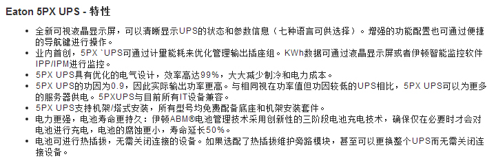 5PX--是一款管理便捷、性能效率出眾、可用性高,靈活性強(qiáng)的Eaton UPS。